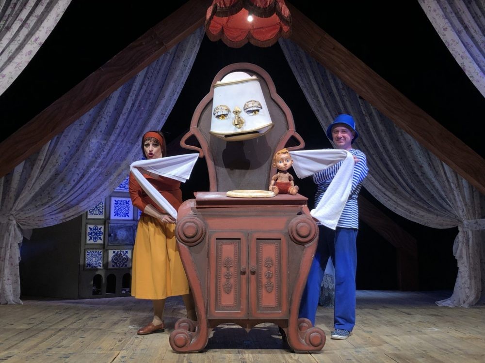 Увлечённые повествованием с пластинки, герои спектакля начинают, следуя за голосом, разыгрывать историю о мальчике-неряхе и оживляют старые предметы. Брызги воды и мыльные пузыри, а главное — добрый, но справедливый Мойдодыр не оставят шанса ни одному грязнуле. А чистота, как известно, — залог здоровья!